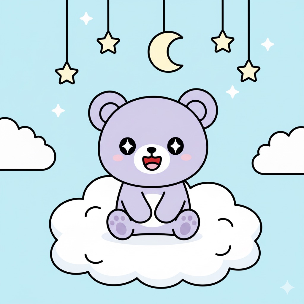 Animalitos Naturaleza Azul Bebé Azul Cielo Azul Pastel Lavanda Lila Suave Chibi / Super Deformed Flat KawaiiSueños Kawaii de Coco y Luna